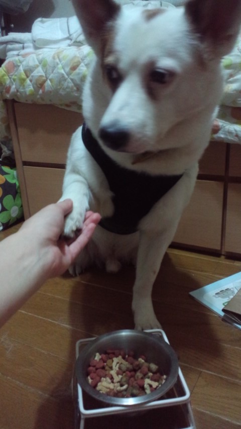 餌中のおすわりとお手